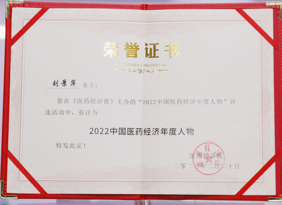 AG刮刮卡药业集团董事长刘景萍当选“2022中国医药经济年度人物”